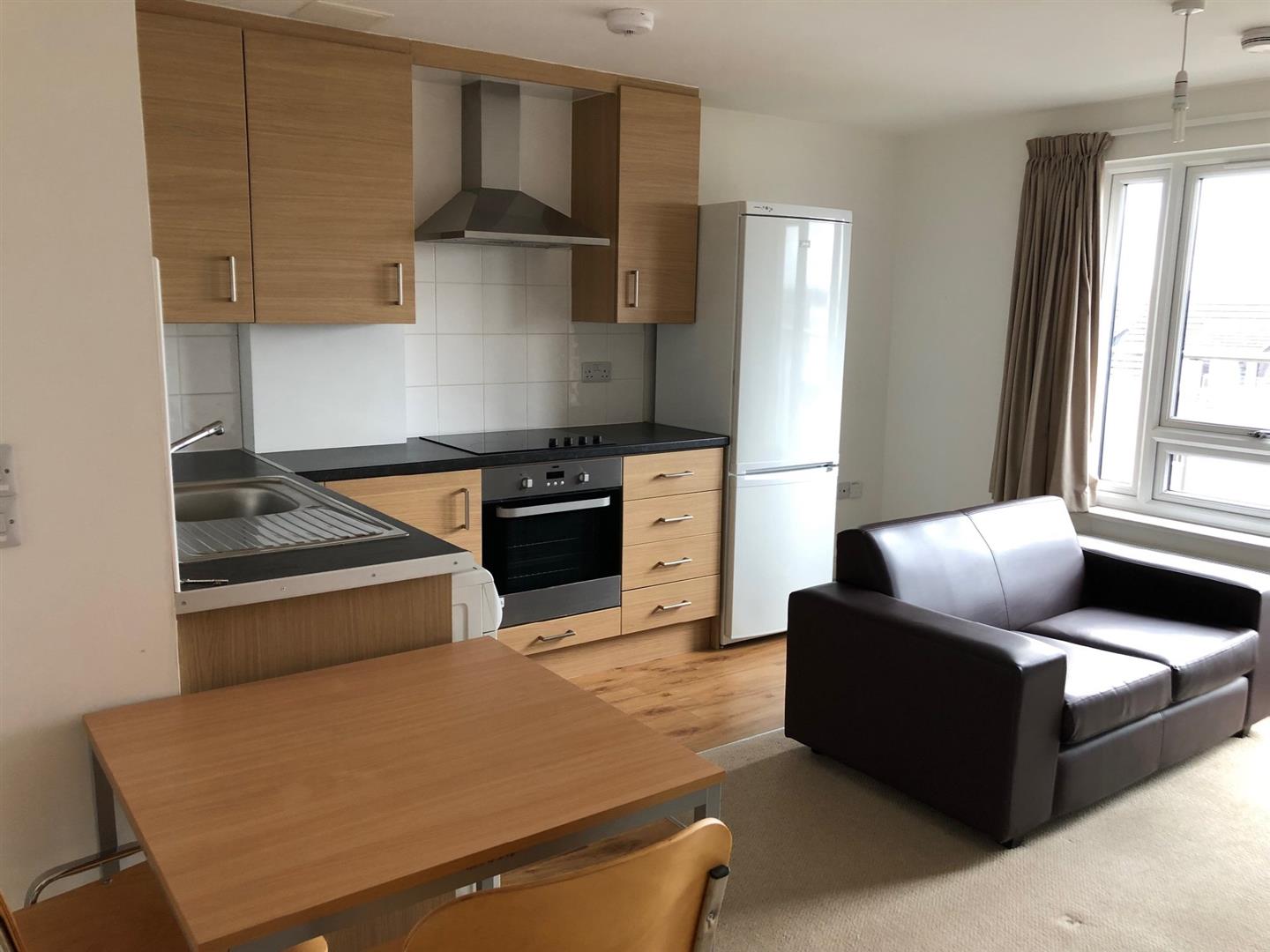 Superb 3rd floor apartment with one double bedroom, large bathroom and a bright open plan kitchen/lounge with access on to a south facing balcony.