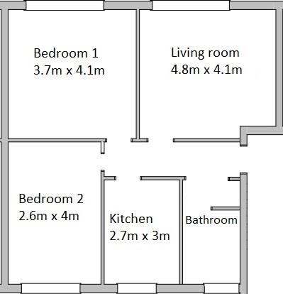 Number and types of rooms - 5 rooms; Kitchen, Living room, Bathroom, 2 Double bedrooms